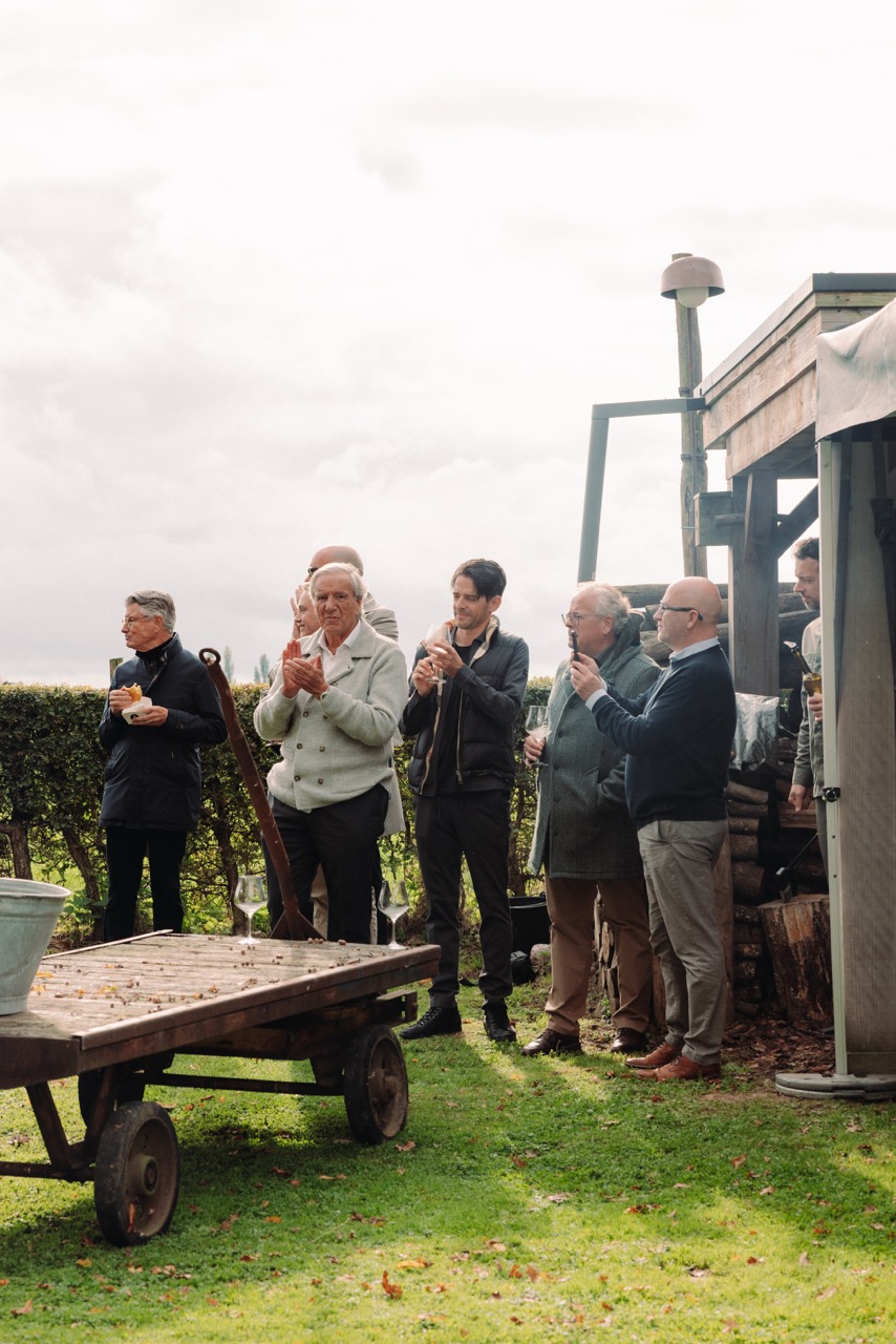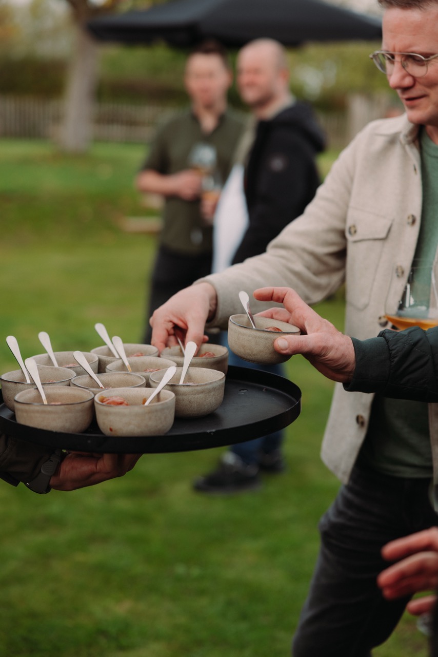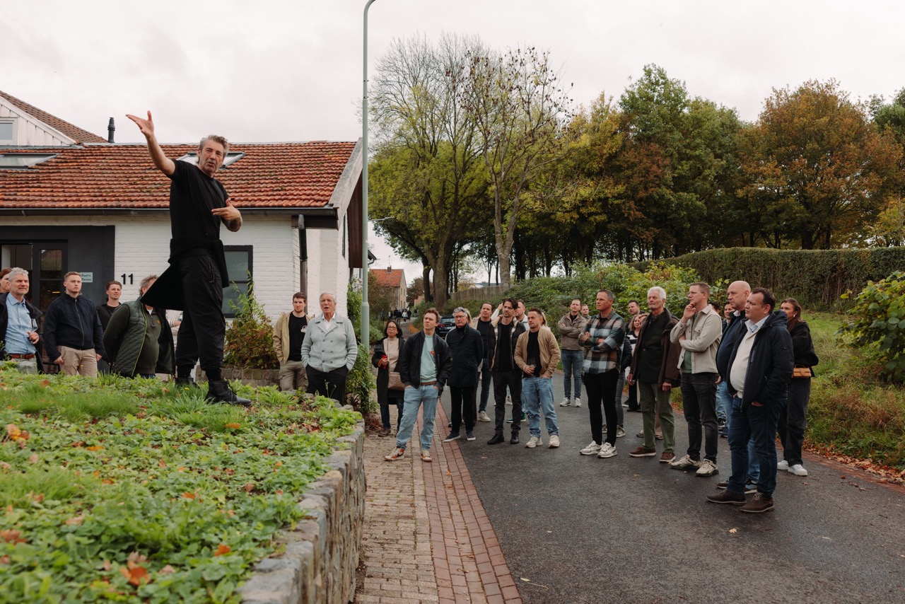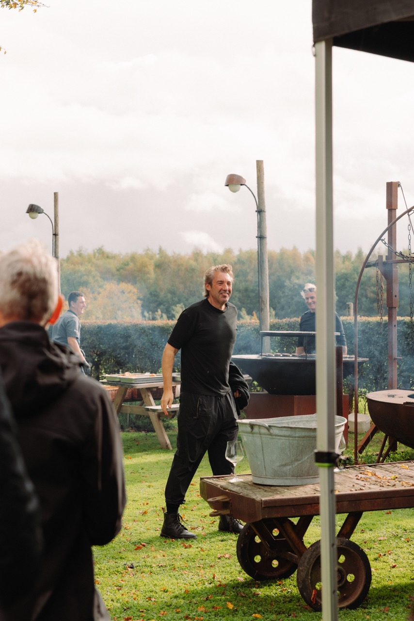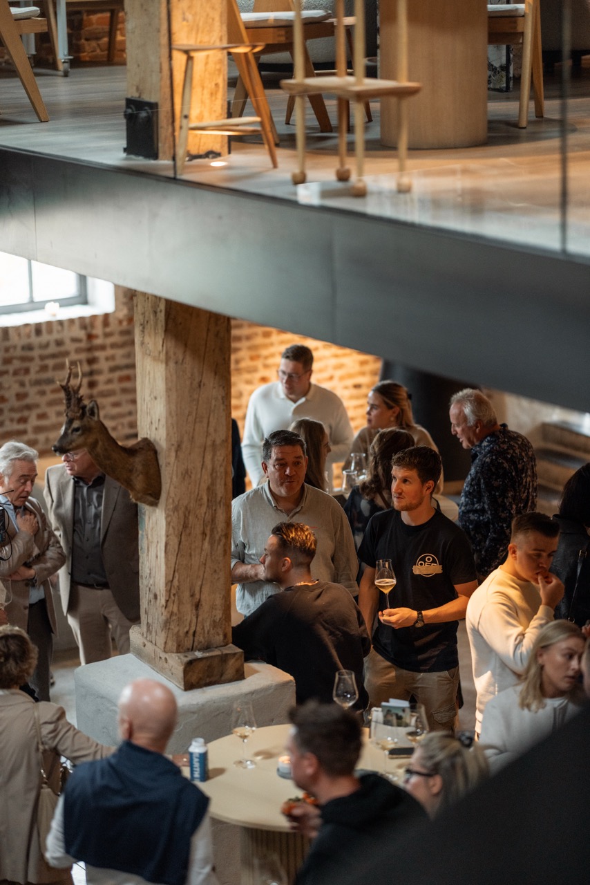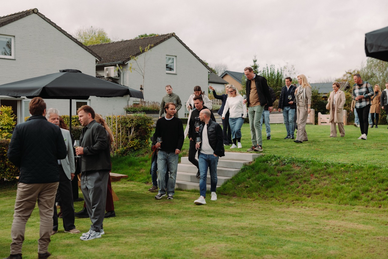 Daarna volgde een geweldige ontvangst bij Hans van Wolde. Eerst vertelde Hans zelf over wat hem drijft en waar hij mee bezig is. Vervolgens kreeg iedereen de kans een kijkje te nemen in het prachtige pand en te ervaren hoe gasten daar een totaalbeleving ondergaan. Buiten werden we verwend door lokale producenten, konden we de ontwikkeling van het totaalconcept met de tuin en de overnachtingsmogelijkheden bekijken, en sloten we gezellig af in de tent met mooie wijnen en bieren, verfijnde amuses, een lekkere punt pizza en heerlijke patisserie.